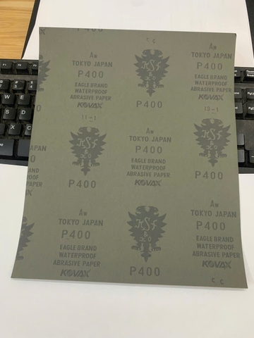 Ráp tờ hãng Kovax, Tokyo Japan, độ nhám P400, kích thước 230mmx280mm. Được sản xuất tại Nhật Bản, là loại ráp tờ phổ biến trên thị trường Việt Nam, chất lượng rất tốt và giá thành rẻ. Có thể mài ở môi trường khô và nước. Phù hợp với mọi chất liệu